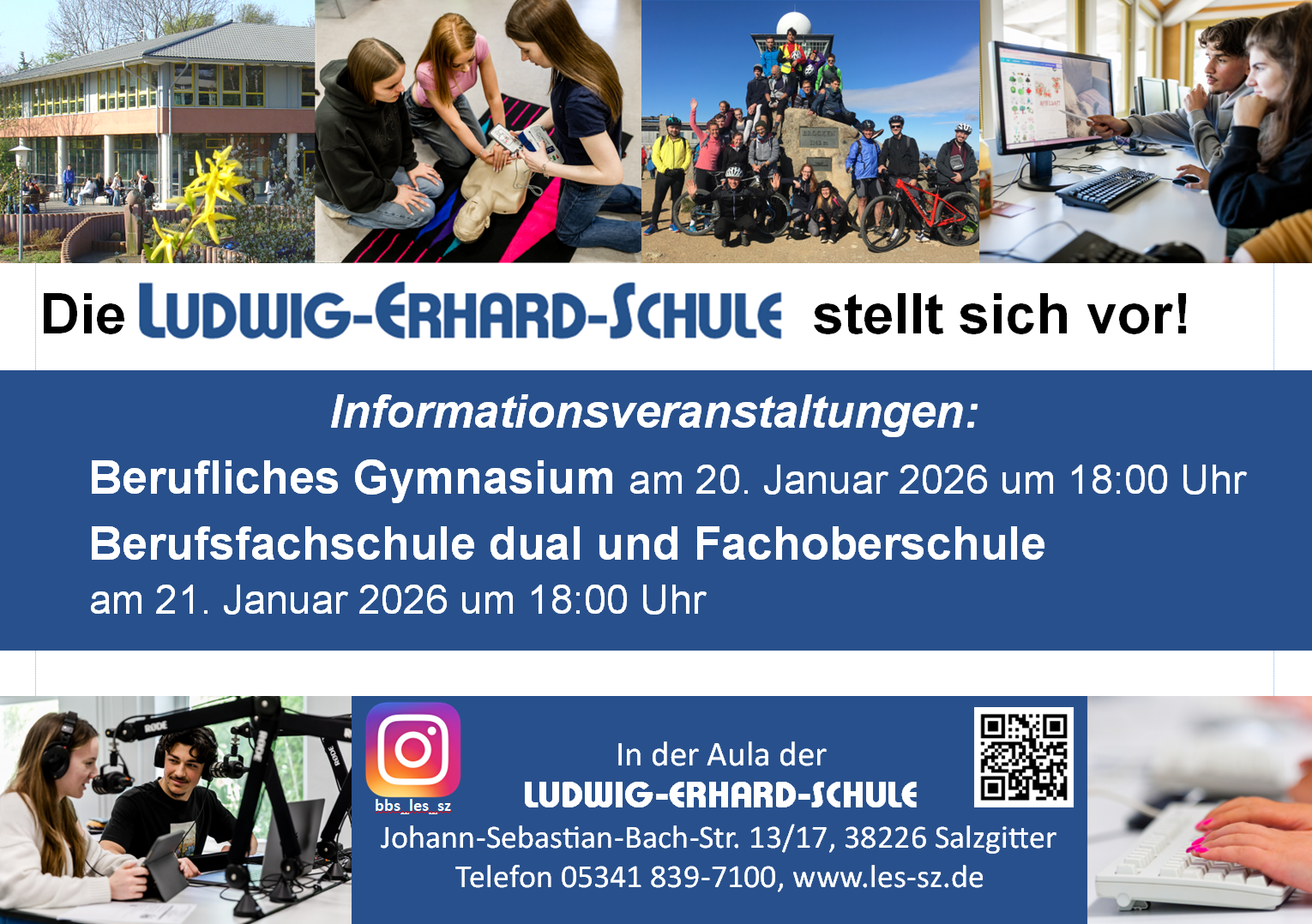 Außerdem ist unser neuer Info-Brief erschienen, mit dem wir über unsere Schülerinnen und Schüler, Eltern und Ausbildungsbetriebe über alle Aktivitäten und/oder Ereignisse innerhalb der Ludwig-Erhard-Schule informieren möchten. Den Info-Brief Nr. 33 finden Sie hier.
