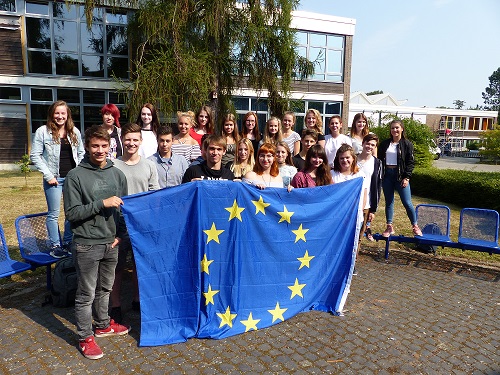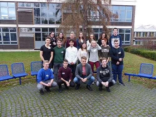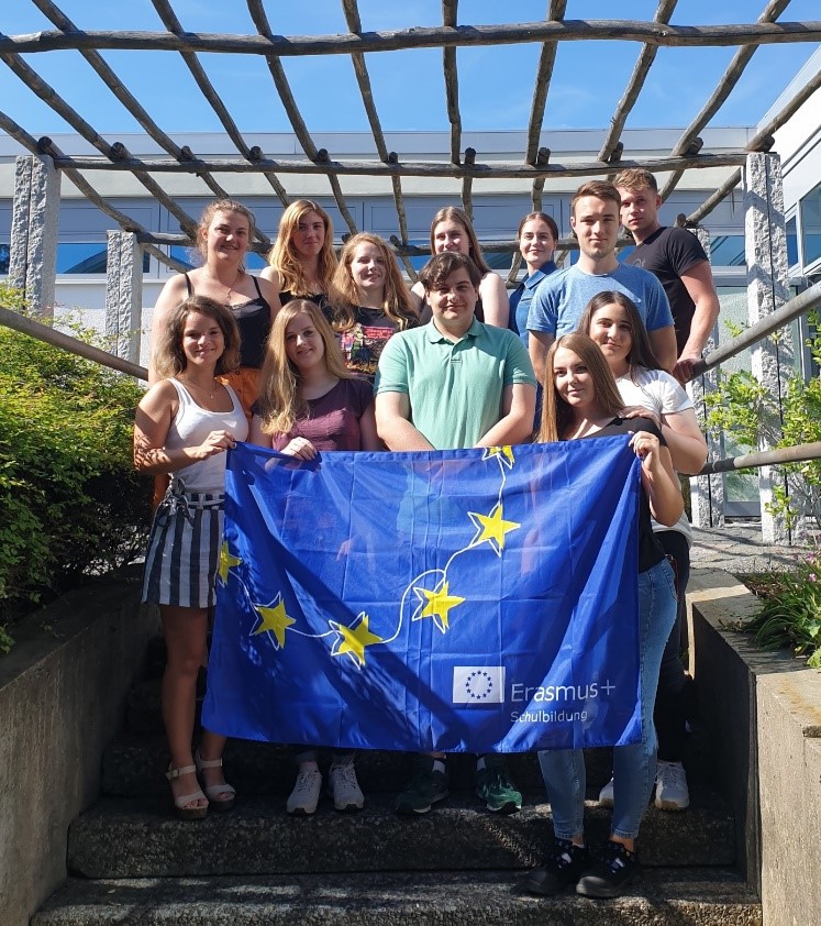 Die Interessenten für das Erasmusprojekt und den Schüleraustausch haben sich zum "Fotoshooting" in der Ludwig-Erhard-Schule versammelt und sehen den zukünftigen Entscheidungen und Aktivitäten mit großer Spannung entgegen.