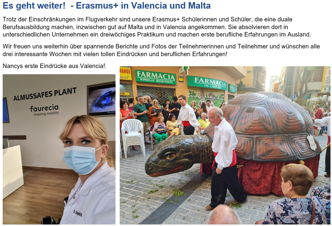 Die anderen fünf Teilnehmer konnten an einem Fortbildungszentrum in Valencia und an der Hochschule in Malta ihr Praktikum absolvieren.